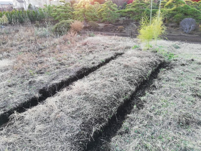 水はけの悪い土地であれば深く掘りますし、水はけのよい土地であれば浅く、あるいはほとんど掘らないこともあります。