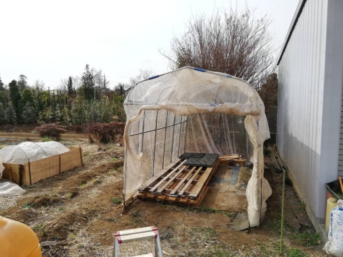 「ハウス」と呼ぶにはあまりにお粗末な出来ですが、これでも十分雨風を防いでくれます。