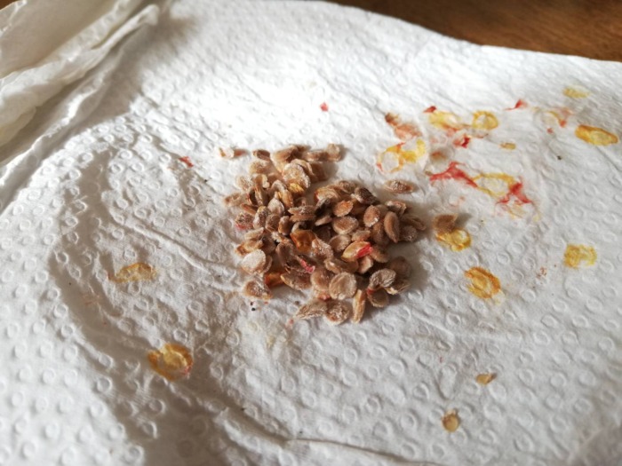 昨年、トマトの自家採種したものを育苗中です。 初の種採りなくせに農書のやり方ガン無視でしたが、今のところ問題なく育っています。 写真を見ていただくと分かりますが、新聞紙で手前と奥に区切ってあります。 手前が自家採種したもの、奥が昨年買った種...